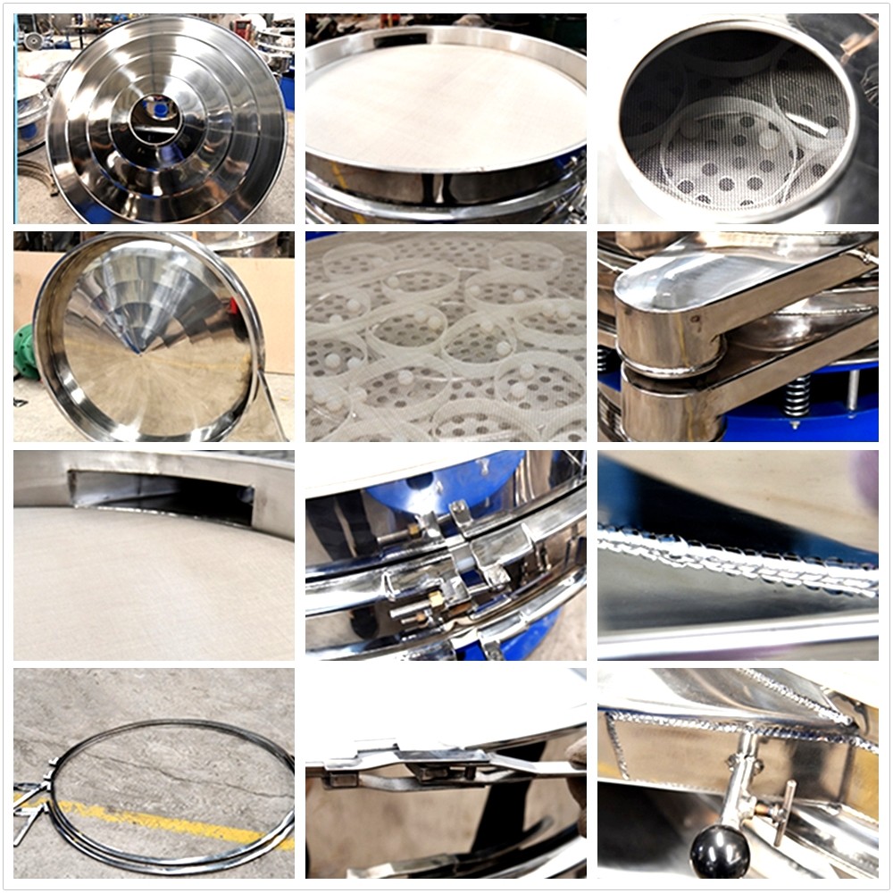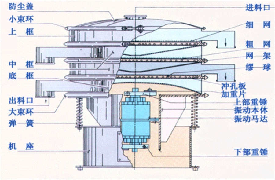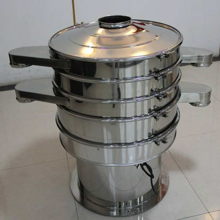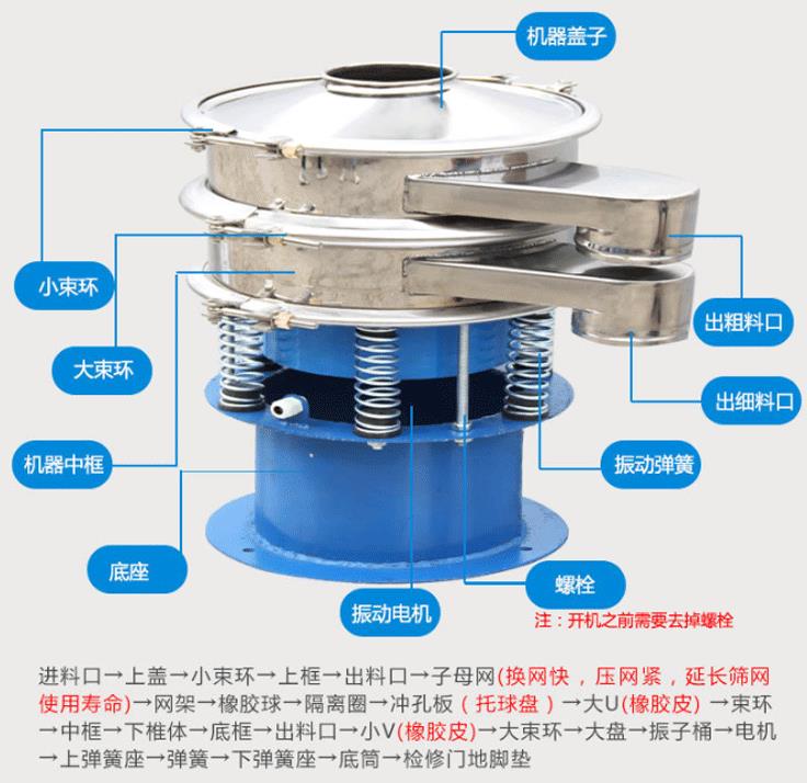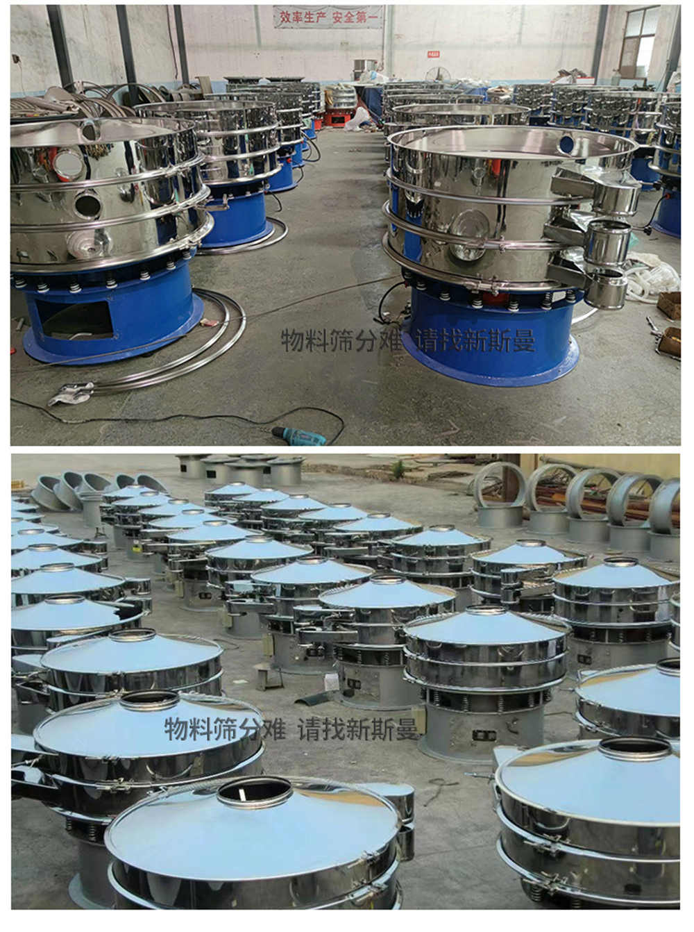 旋振篩是一種高精度細(xì)粉篩分機械,其噪音低、效率高,快速換網(wǎng)只需3-5分鐘,全封閉結(jié)構(gòu),適用于粒、粉、粘液等物料的篩分過濾。旋振篩是由直立式振動電機作激振源,電機上、下兩端安裝有偏心重錘,將電機的旋轉(zhuǎn)運動轉(zhuǎn)變?yōu)樗健⒋怪薄A斜的三次元運動,再把這個運動傳遞給篩面。調(diào)節(jié)電機上、下兩端的相位角,可以改變物料在篩面上的運動軌跡。