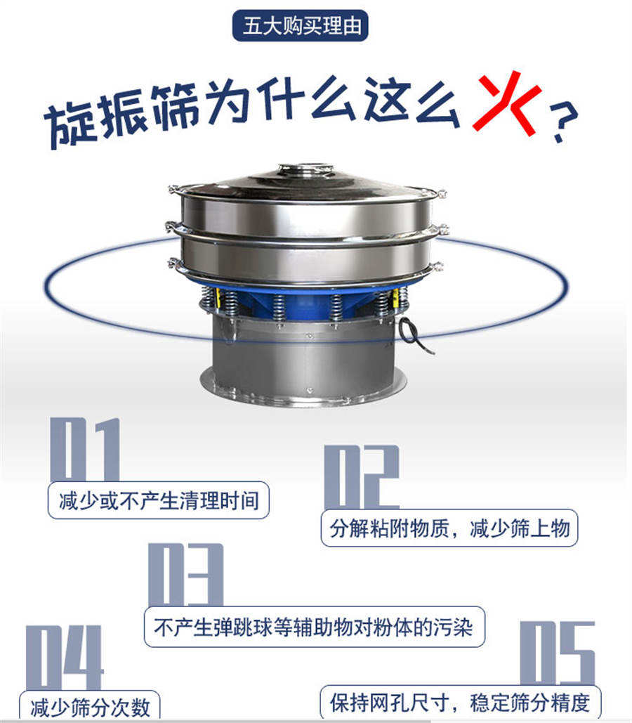 篩選范圍廣--只有系列三次元旋振篩能分選如此廣的原料范圍:任何顆粒、細(xì)粉、漿液都可以篩選。篩分細(xì)500目(28微米),過濾細(xì)5微米。網(wǎng)孔防堵塞--三次元振動功能及自動清理堵網(wǎng)裝置把堵網(wǎng)幾率降到小。 單層或多層分選--每臺旋振篩可選一至五層篩網(wǎng),能同時進(jìn)行二到六個等級的分選或過濾。