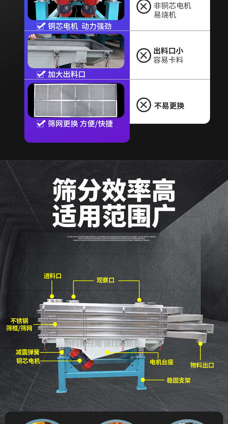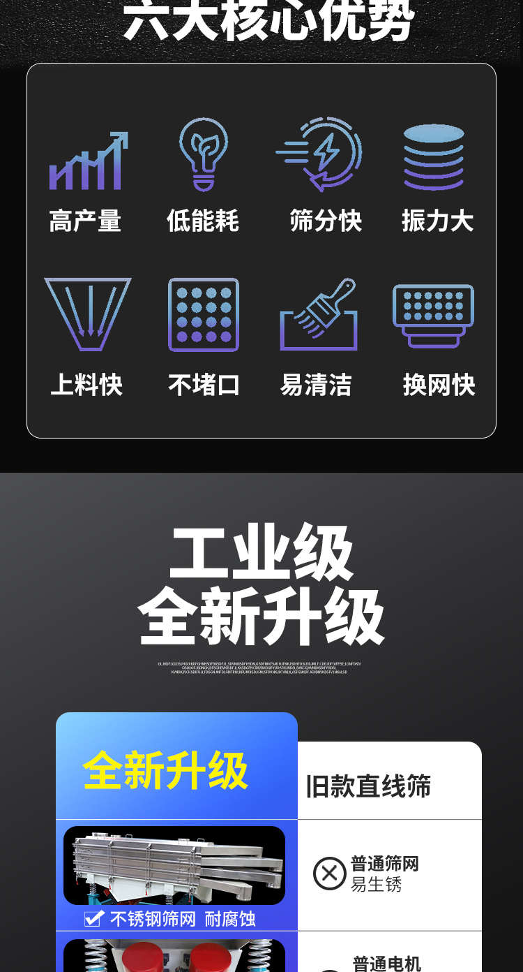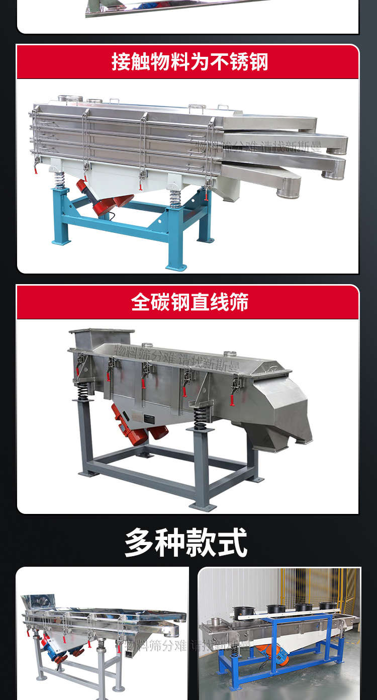 直線振動篩(直線篩)穩(wěn)定可靠、消耗少、噪音低、壽命長、振型穩(wěn)、篩分效率高等優(yōu)點(diǎn)。