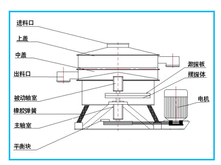 振動(dòng)電機(jī):是設(shè)備的主要?jiǎng)恿碓矗ㄟ^振動(dòng)電機(jī)激振力的作用使物料在篩面上運(yùn)動(dòng)。