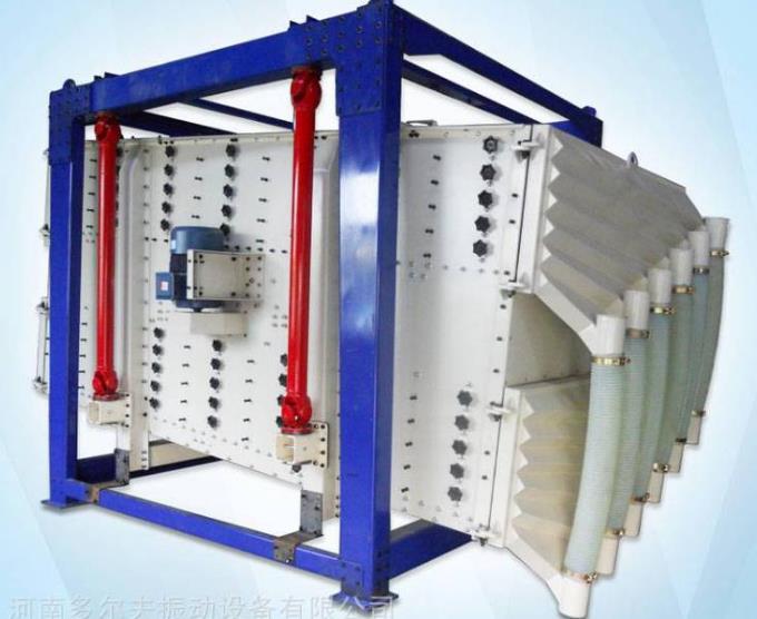 方形搖擺篩的往復(fù)擺動(dòng)運(yùn)動(dòng)可以在幾乎沒有垂直振動(dòng)和跳躍的情況下將物料快速送到篩面上,小的物料快速通過網(wǎng)面,而大的顆粒則逐漸輸送到出料端。