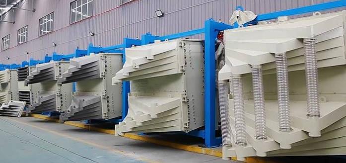 方形搖擺篩主要是由進(jìn)料口、篩箱、驅(qū)動(dòng)裝置、篩架、支撐架、減振裝置、出料口等組件構(gòu)成。