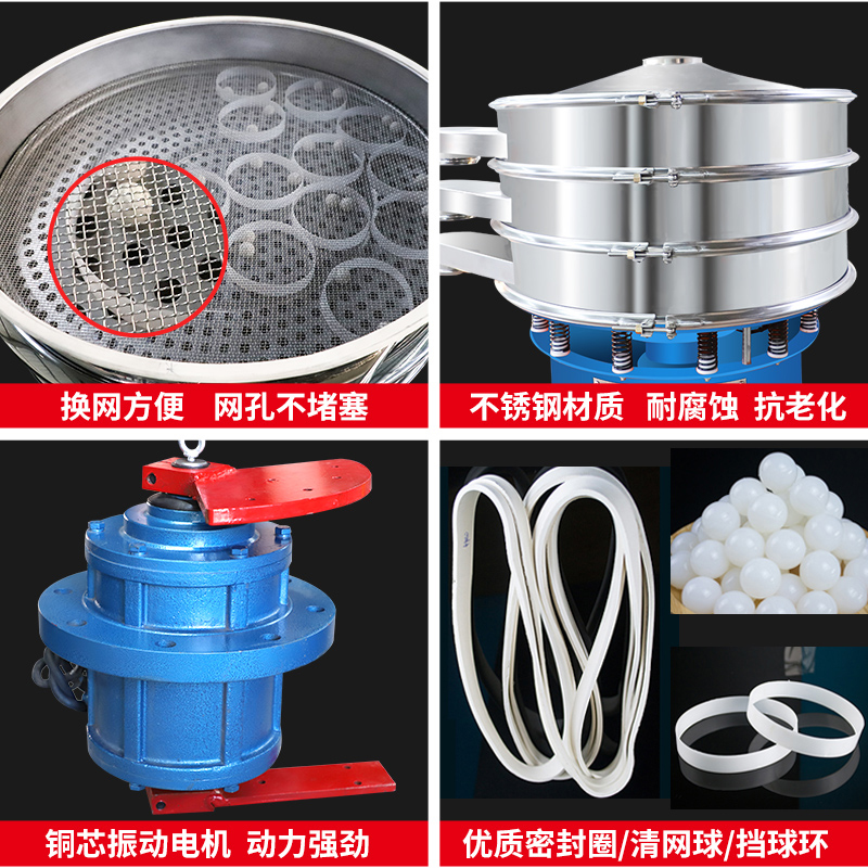 全封閉結(jié)構(gòu),粉末不飛揚(yáng)、液體不泄露、網(wǎng)孔不堵塞、自動(dòng)排放、機(jī)內(nèi)無(wú)存料、網(wǎng)架結(jié)構(gòu)無(wú)死角、篩網(wǎng) 使用面積增加。
