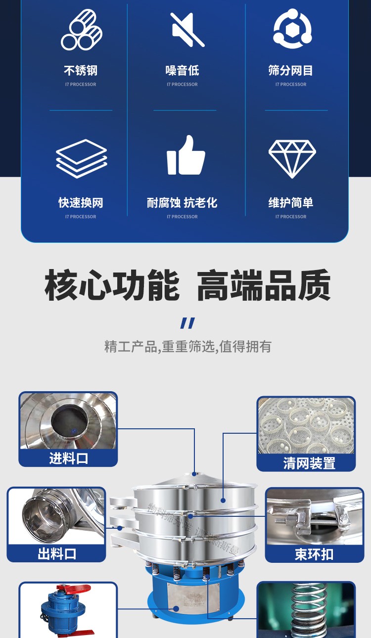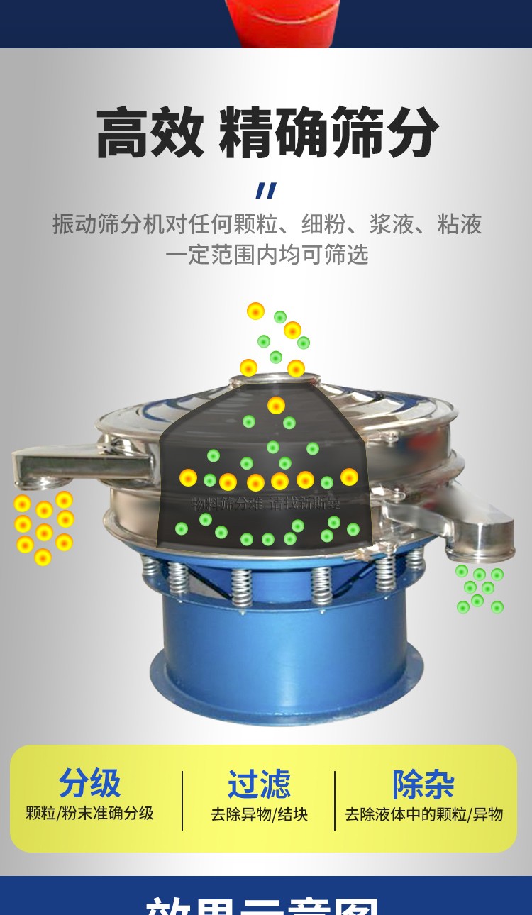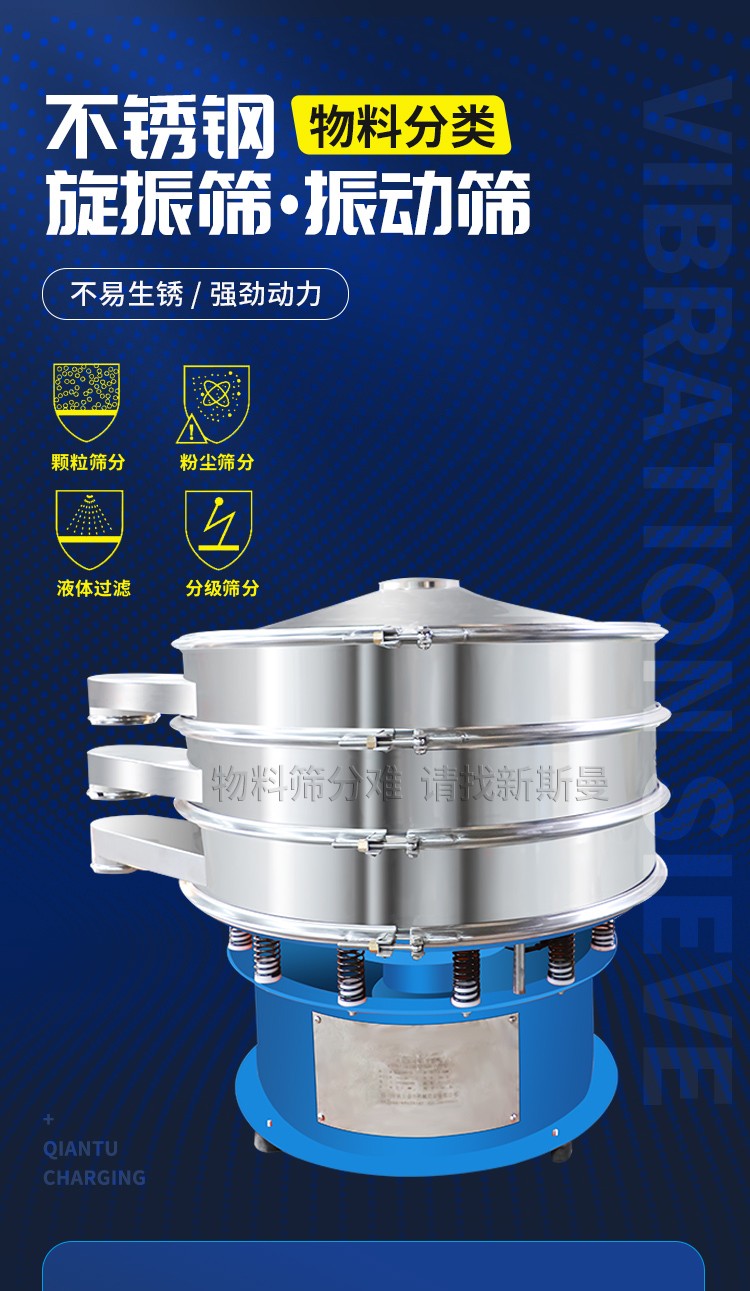 2、去液體:本設(shè)備單層、多層使用,可十分有效地處理固體、液體的混合物料。快速實(shí)現(xiàn)固液分離,并篩選過(guò)濾出不同的目的物料。