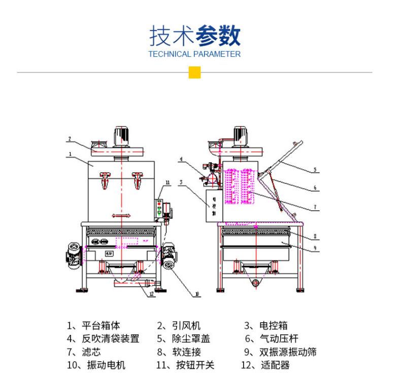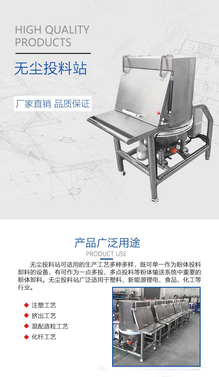 拆包時(shí)由于集塵風(fēng)機(jī)的作用,可以避免物料粉塵到處飛揚(yáng)。