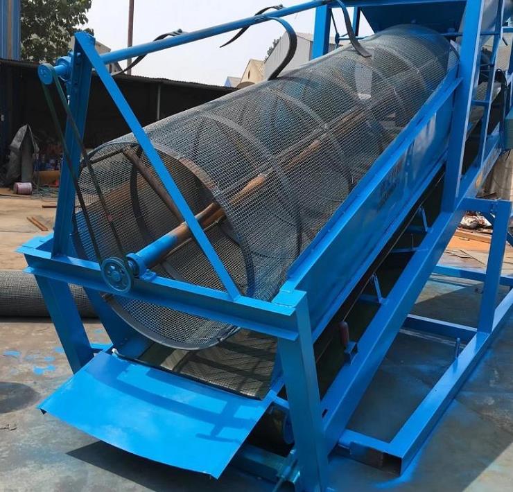 當(dāng)物料進入重型滾筒篩內(nèi)部篩網(wǎng)時,由于滾筒裝置的傾斜與轉(zhuǎn)動,使篩面上的物料翻轉(zhuǎn)與滾動,使合格物料(篩下產(chǎn)品)經(jīng)滾筒外圓的篩網(wǎng)排出,不合格的物料(篩上產(chǎn)品)經(jīng)滾筒末端排出。由于物料在滾筒內(nèi)的翻轉(zhuǎn),滾動,使卡在篩孔中的物料可被彈出,防止篩孔堵塞。