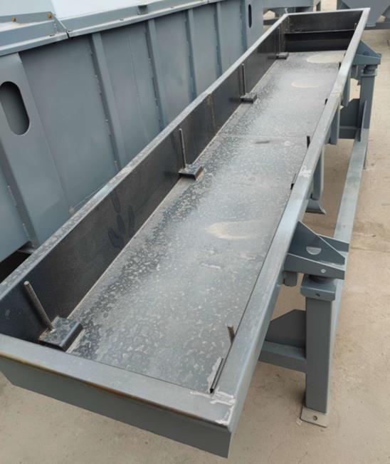 振動輸送機一般由振源—振動電機或激振器、承載體、減振支承、承載基礎(chǔ)及相關(guān)配套附件等組成。根據(jù)現(xiàn)場使用環(huán)境及輸送物料特性要求,輸送機承載體可采用不同材料分別加工成U形槽和管狀等結(jié)構(gòu)形式,并可按有無密封要求制作成敞開型或封閉型,以滿足不同工藝流程;由于設(shè)備承載體是金屬制件及潤滑點遠離物料,因此,該機不僅可以輸送各種常溫、普通物料,而且可以輸送很多高溫、有毒等非常規(guī)物料;如對承載體施行特殊加工,則在輸送過程中可實現(xiàn)物料的篩選、干燥、加溫、冷卻等工藝要求。