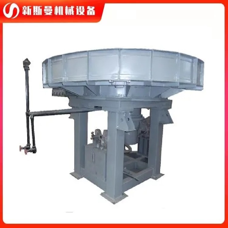 工作時(shí),電動(dòng)機(jī)通過(guò)減速機(jī)帶動(dòng)圓盤(pán)轉(zhuǎn)動(dòng)。圓盤(pán)轉(zhuǎn)動(dòng)時(shí),料倉(cāng)內(nèi)的物料隨著圓盤(pán)一起移動(dòng),并向出料口的一方移動(dòng),經(jīng)閘門(mén)或刮刀排出物料。排出量的大小可用刮刀裝置或閘門(mén)來(lái)調(diào)節(jié)。圓盤(pán)給料機(jī)適用于20mm以下粉礦的給料設(shè)備,尤其針對(duì)河沙、石英砂、機(jī)制砂等砂類(lèi)、顆粒類(lèi)物料佳。