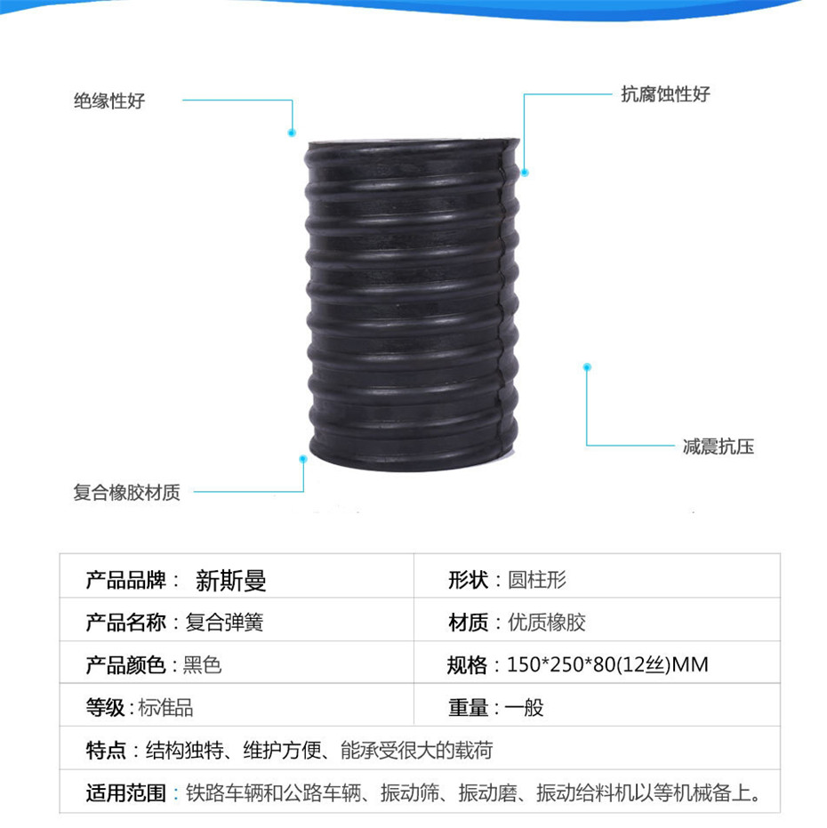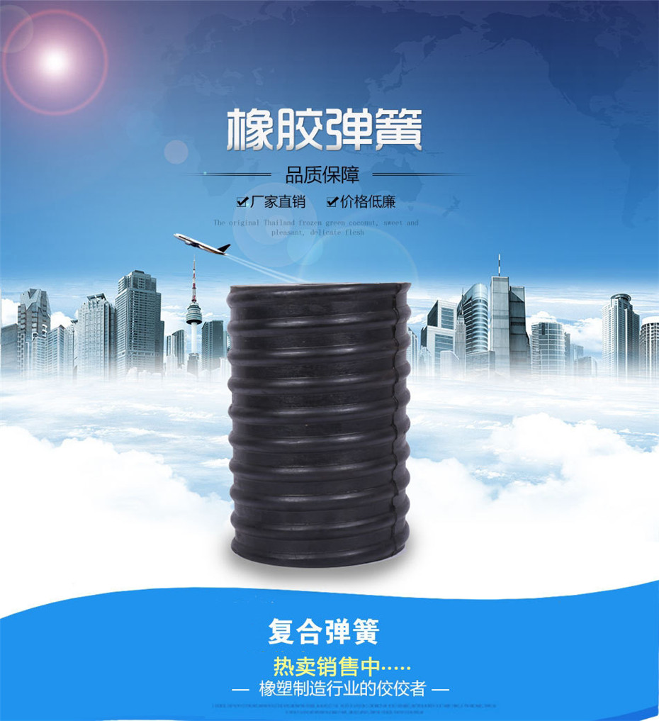 咨詢熱線:15537323577 復(fù)合彈簧:是由金屬螺旋彈簧和橡膠復(fù)合在一起的園筒狀彈性體。該產(chǎn)品優(yōu)于金屬?gòu)椈桑哂锌垢g性好、壽命長(zhǎng)等優(yōu)點(diǎn),與其它彈簧相比,減振能力強(qiáng),緩沖效果好。