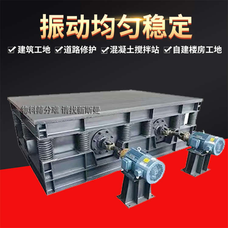 主要包括機座,平臺殼體,安裝在殼體內(nèi)的若干個激振箱,貫穿激振箱的傳動軸,激振器,驅(qū)動電機,變頻控制裝置,減震彈簧等。