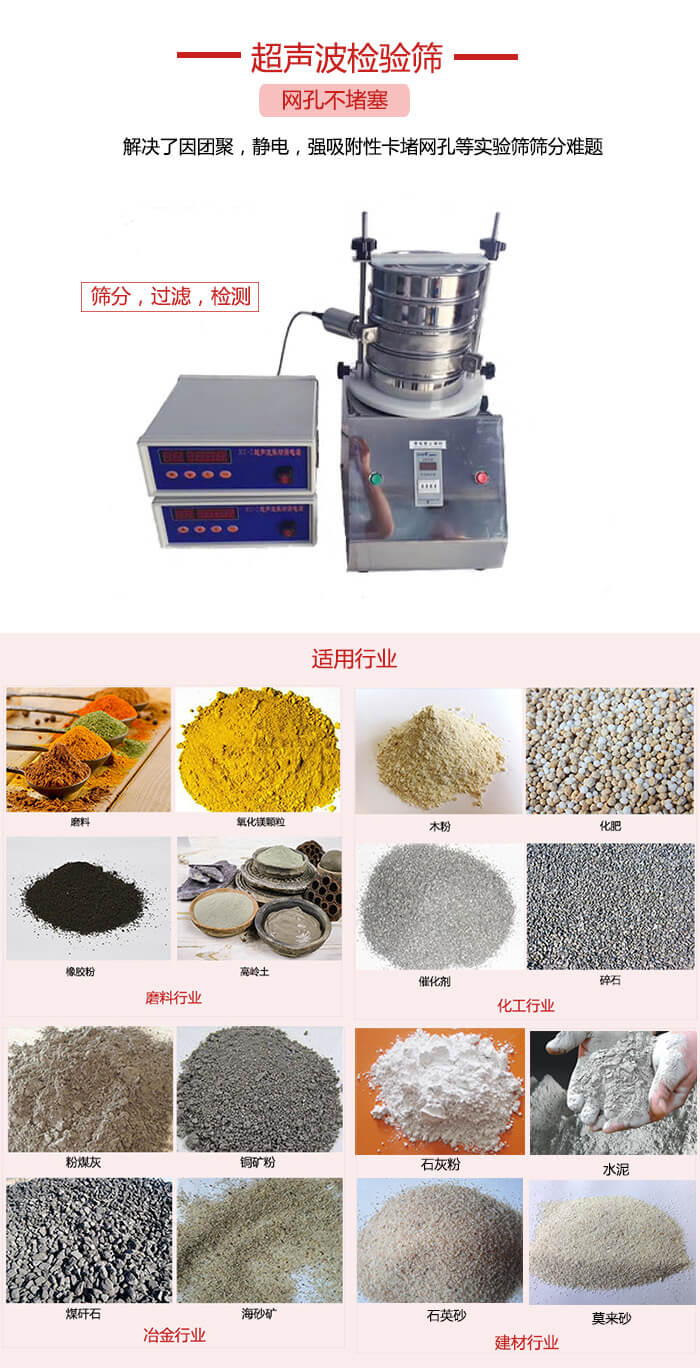 超聲波檢驗篩在JYS-200標準檢驗篩的基礎(chǔ)上研發(fā)的高科技微細粉分級設(shè)備,是當前在做微細粉分樣篩選時網(wǎng)孔堵塞的有效的解決儀器。