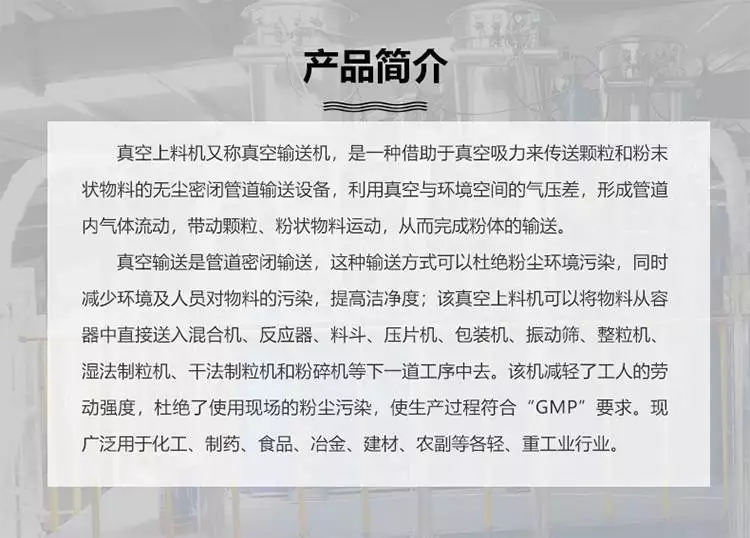 ZKS系列真空上料又稱真空輸送機(jī),是通過(guò)氣體產(chǎn)生真空輸送粉體料的設(shè)備,是氣體輸送的一種。適用于醫(yī)藥、食品、化工、冶金、建材等多個(gè)行業(yè),針對(duì)各種粉體物料的密閉輸送,提高物料的潔凈度,能滿足不同客戶的多種輸送需要。